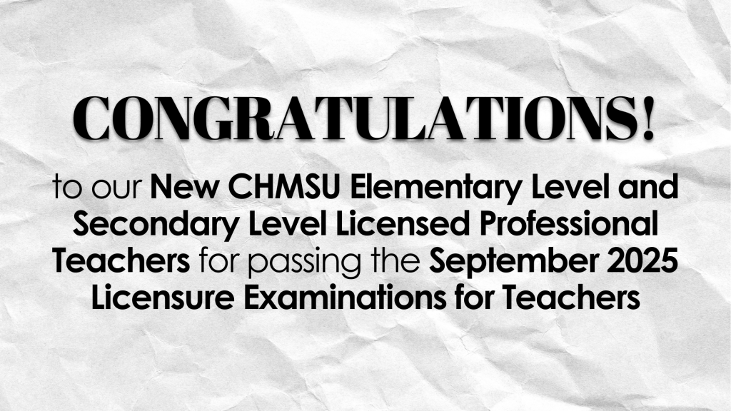 The CHMSU community congratulates our new Licensed Professional Teachers who passed the September 2025 Licensure Examination for Professional Teachers. We also extend our congratulations to the faculty and staff of the College of Education. Share this post