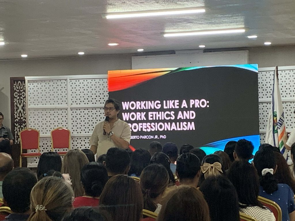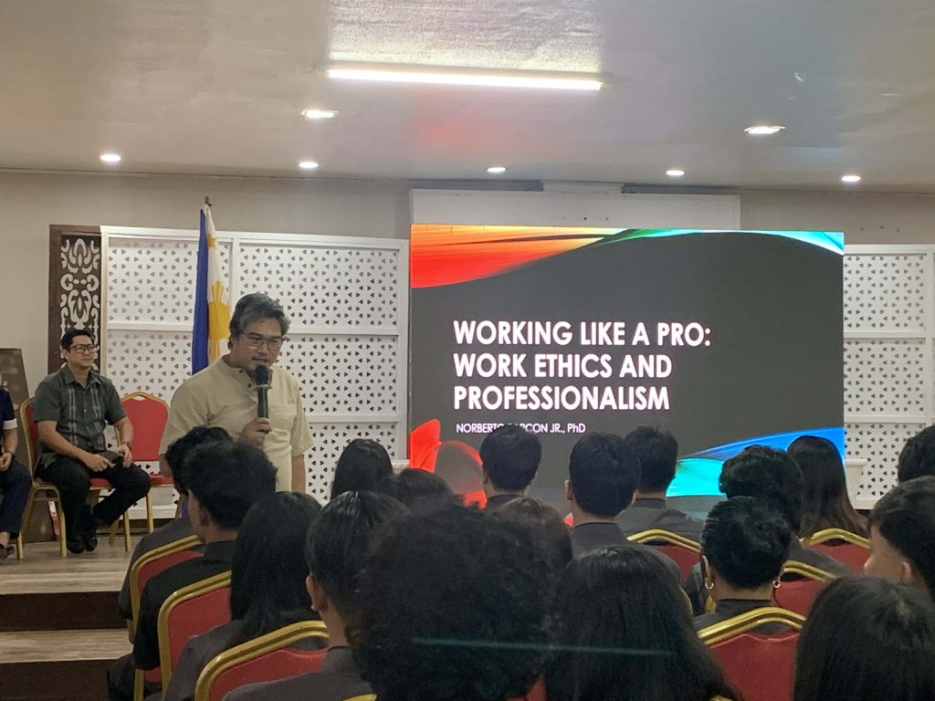 The keynote address was delivered by Dr. Norberto Parcon, Internship Coordinator and GEEGAD Instructor. In his presentation, titled “Working like a Pro: Work Ethics and Professionalism,” Dr. Parcon emphasized the importance of integrity, accountability, discipline, and strong professional ethics in the workplace.