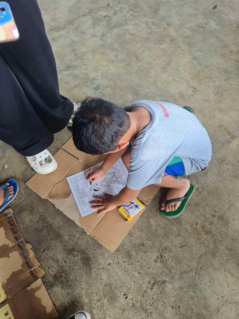Working in coordination with Elizabeth Tagnia, Municipal Social Welfare and Development Officer of La Castellana, the team provided psychosocial services to evacuees housed at St. Vincent’s High School, Bahay Silangan–Fastrac, and Balay Daguinot in Barangay Robles.
