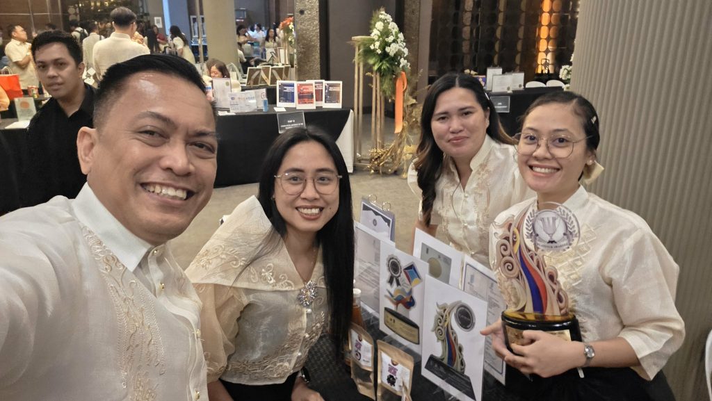 The Platinum Cluster Award for CHMSU was received by Intellectual Property Management Office Director Armando Reosura and College of Industrial Technology Dean Angelie Lopez. They were accompanied to the awarding ceremony by IPMO staff La Riena Fierro and April Rose Galeno.