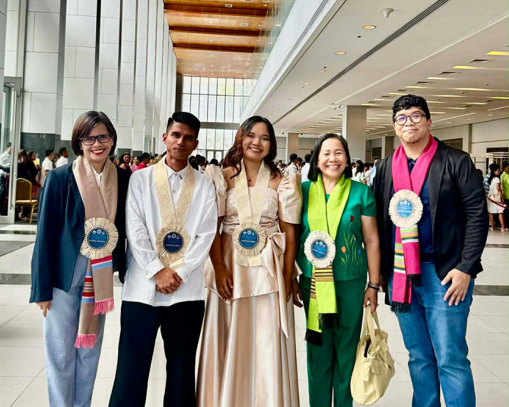 (from left) BSNED Program Chairperson Juvi Ann Geroche, Mark Steven Moncada, Charlene Makilan, COED Dean Ophelia Duayan, and BSED major in Science Chairperson Jomeo Sumalapao