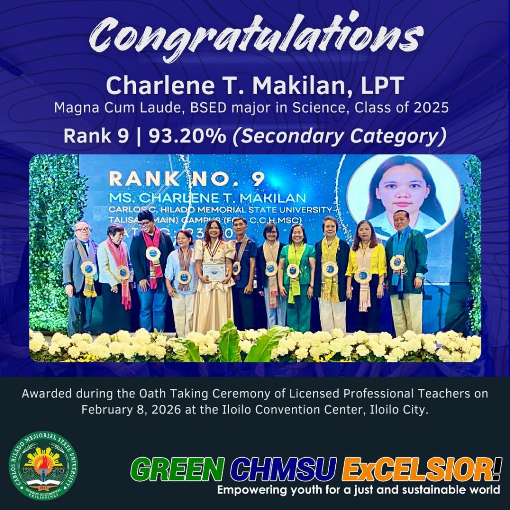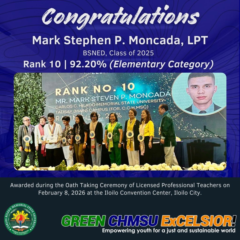 The CHMSUan topnotchers during the September 2025 Licensure Examination for Professional Teachers (LEPT) were recognized during the Licensed Professional Teachers oath-taking ceremony last Ferbuary 8, 2026.