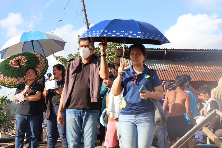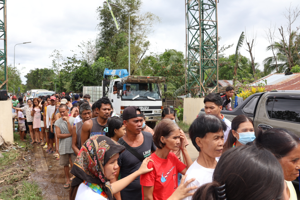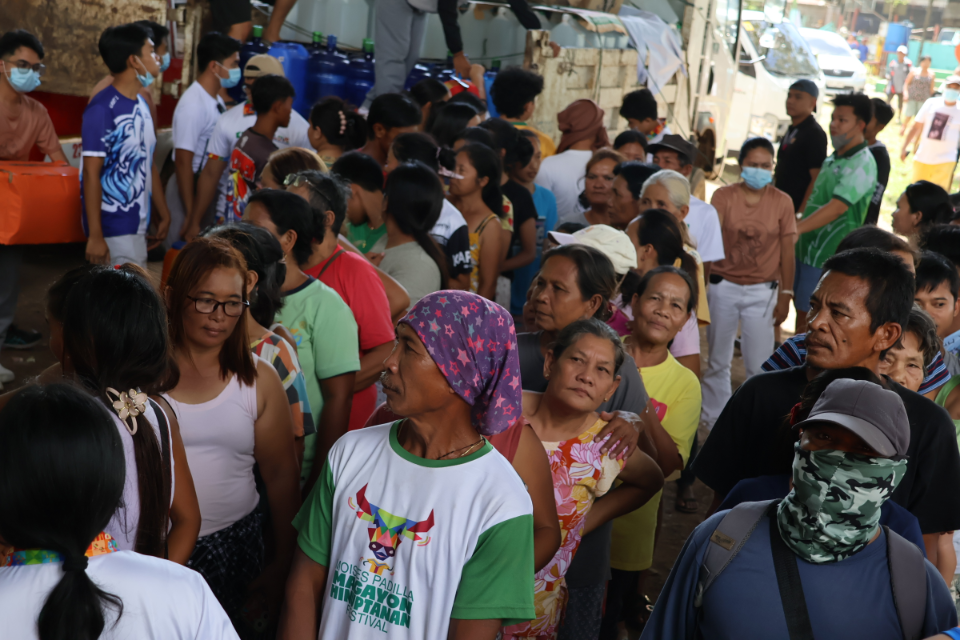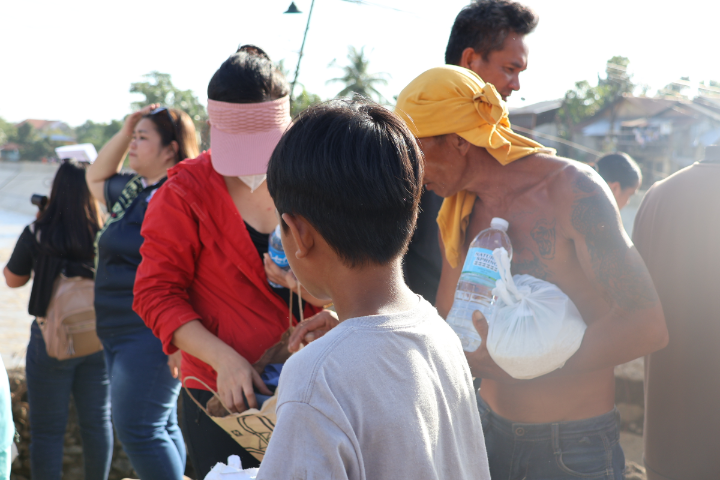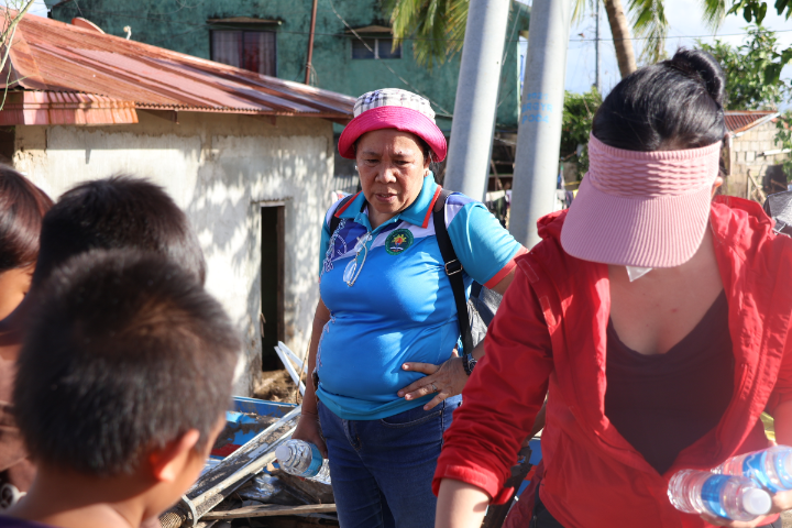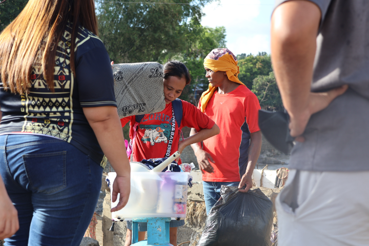 BEYOND THE SHELTER. Aside from bringing aid to the families staying at Odiong Elementary School, the communties surrounding the the evacuation shelter also received relief packs and drinking water. The team also stopped over at roadside Brgy. 1 to drop more drinking water to affected households.