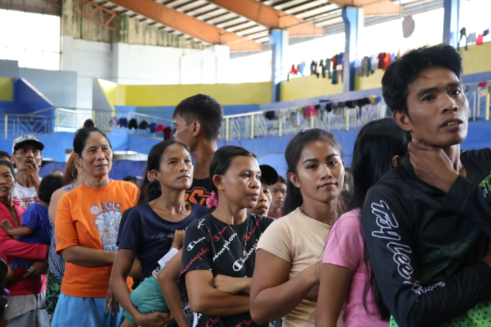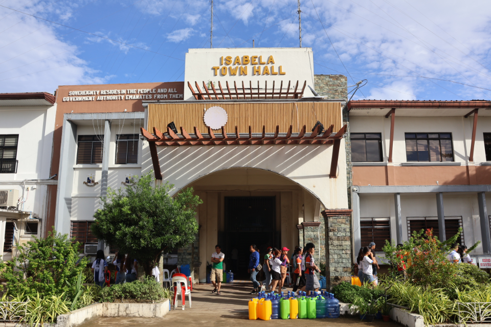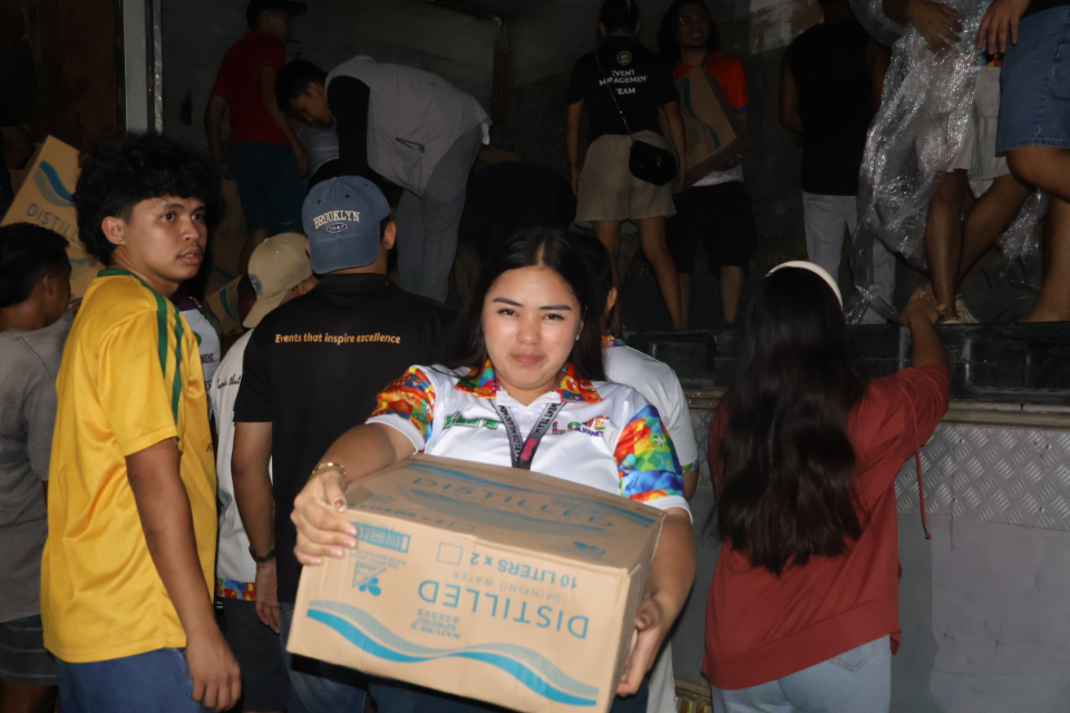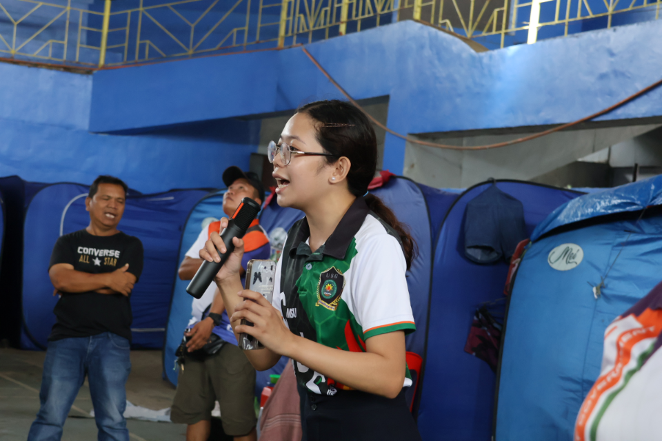 FIRST STOP. Evacuees staying at the Isabela Socio-Cultural Center received the first batch of aid. The CHMSU volunteers then dropped off additional drinking water at the town hall.