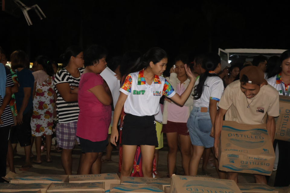 Relief was then extended to 90 families (330 individuals) sheltering at Odiong Elementary School, whose homes had been partially or completely destroyed. An additional 238 residents in surrounding areas received food packs and water.