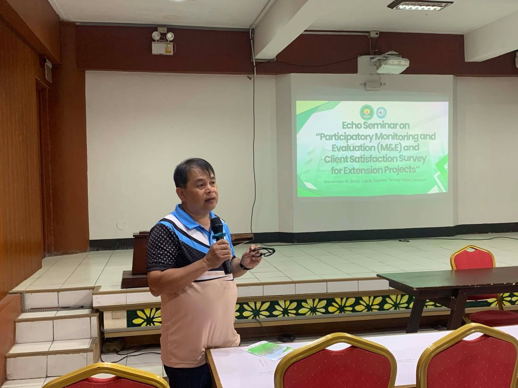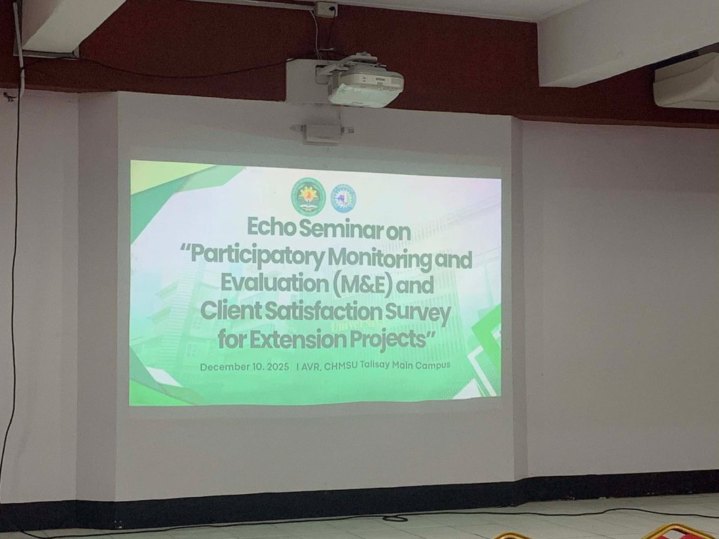 Extension and Community Services (ECS) coordinators and program leaders convened at the Audio Visual Room, Talisay Campus, for the Echo Seminar on “Participatory Monitoring and Client Satisfaction Survey for Extension Projects”, afternoon of December 10, 2025.