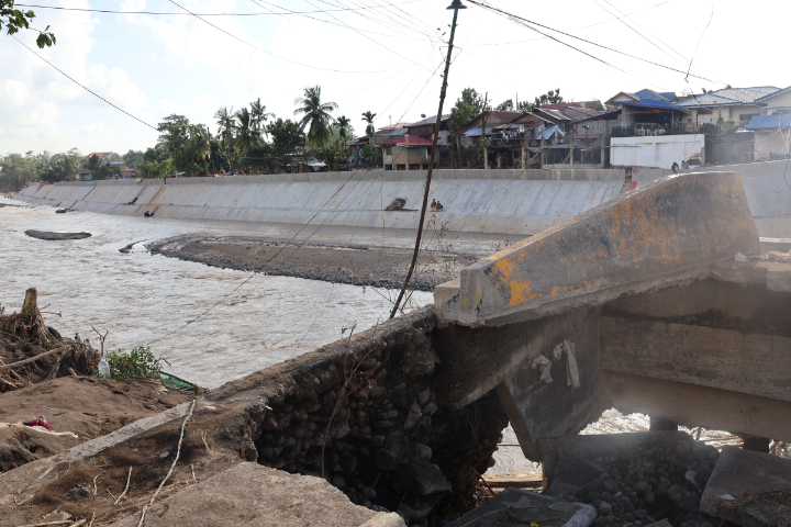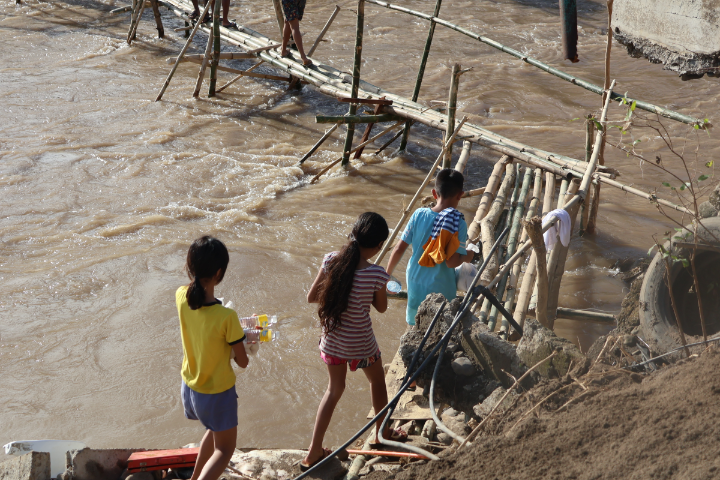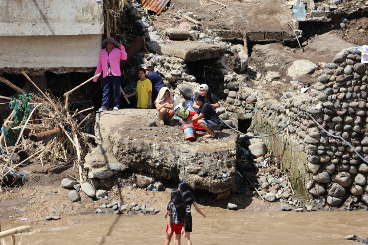 MAKESHIFT. With the concrete bridge destroyed by the rushing whitewater and debris at the height of the storm, residents are left crossing on a bamboo bridge to get relief and food packs which are mainly distributed in evacuation shelters.