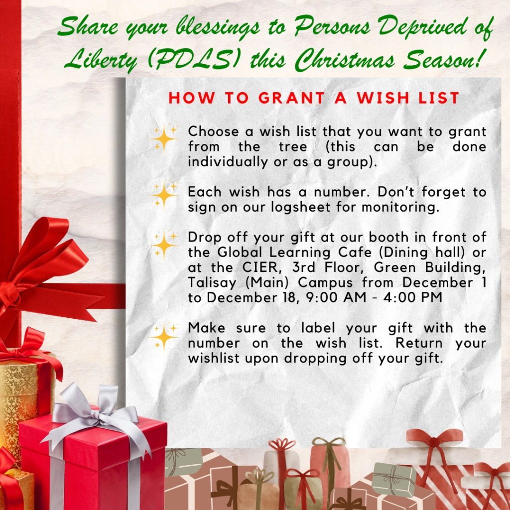 This holiday season, Carlos Hilado Memorial State University once again partnered with the Bureau of Jail Management and Penology (BJMP) Talisay City to spark hope and spread joy through the “Wish Upon A Tree” campaign.