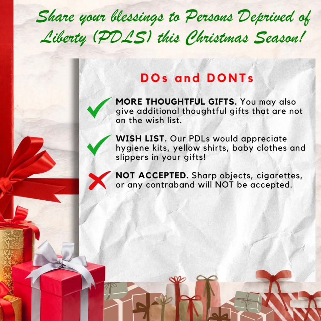 PDLs would appreciate items such as hygiene kits, yellow shirts, baby clothes, slippers, and other thoughtful gifts beyond the wish list.